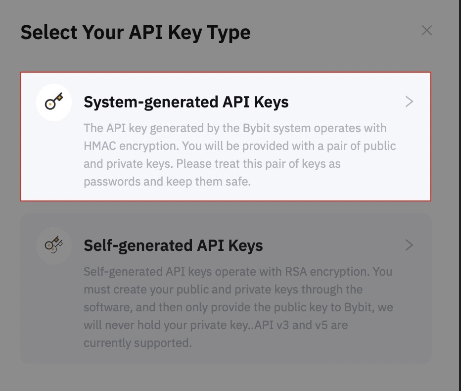 Note: Each exchange has its own security settings for copying API keys, such as 2FA authentication. We do not include those screens as they are standard and their availability depends on the individual settings of your exchange account.